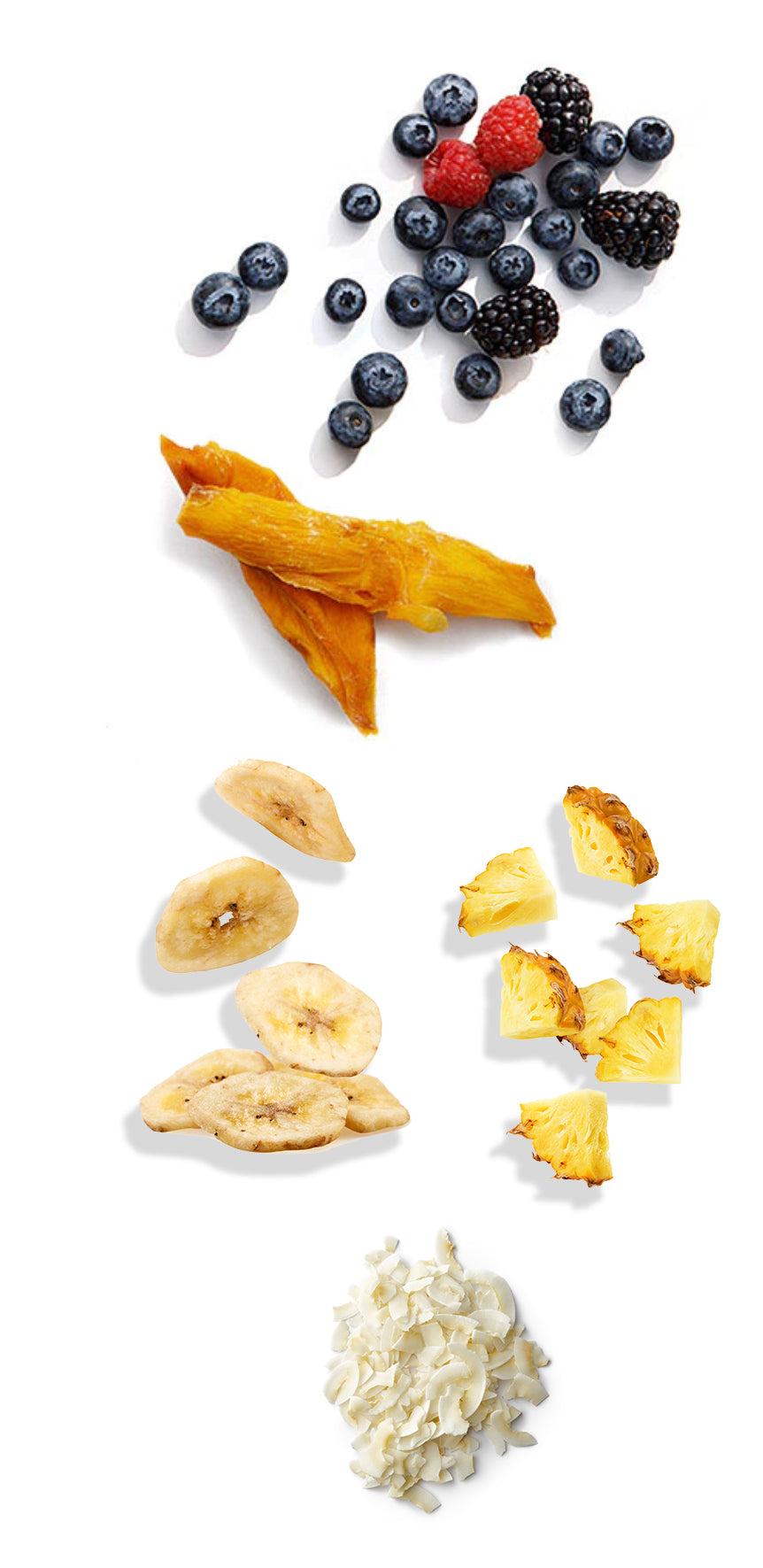 Berries: Wildly healthy berries including a mix of organic freeze-dried raspberries, blackberries, blueberries, and strawberries. Full of polyphenols and flavonoids which have anti-cancer properties. Berries have also been shown to promote heart health and reduce inflammation. Excellent source of vitamins, minerals, fiber, and antioxidants.